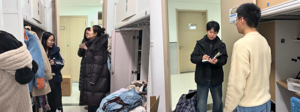 为了解学生入住情况及思想动态,校院领导与辅导员第一时间深入学生宿舍,查看宿舍环境与配套设施,了解学生对新环境的适应情况。老师们勉励大家尽快调整状态,适应新环境、融入新集体,充分利用北校区优质的科研资源与学习平台,潜心钻研、勇攀高峰。