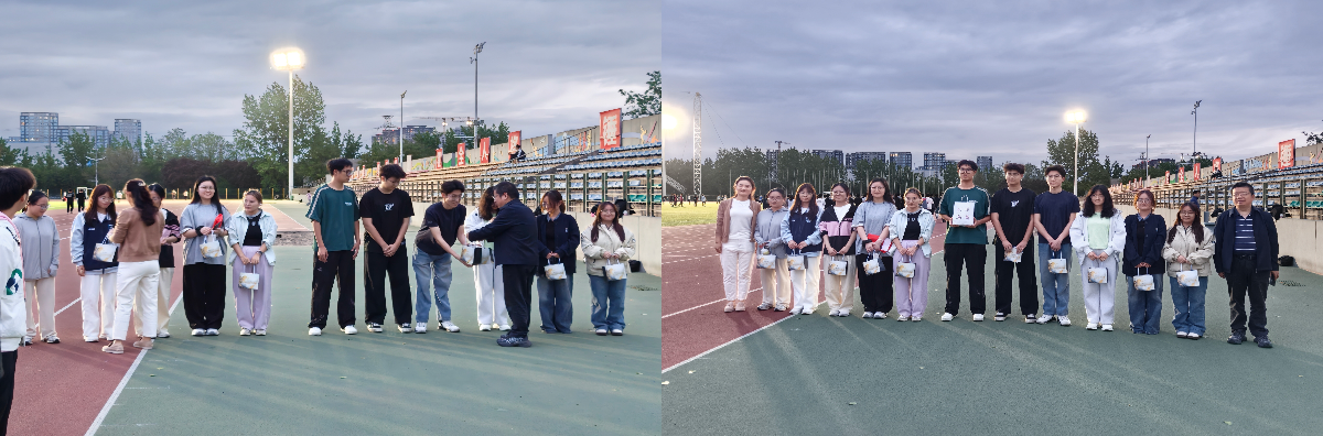4月15日下午,无码av影片 党委书记、院长闫茂德,院党委副书记高婷婷及全体辅导员来到北校区朝晖运动场慰问无码av影片2026年春季运动会备赛运动员并指导训练。