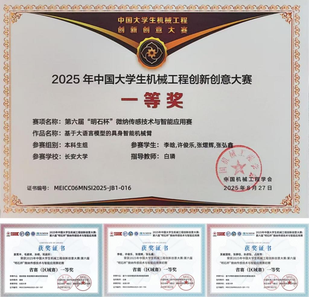 惠萌教授指导的袁霄冲团队和姚锐老师指导的吴崔国铭团队分获陕西省一等奖。